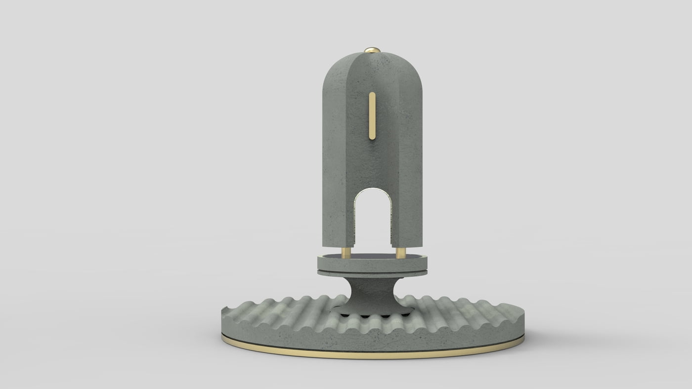 This table lamp is designed for ambient mood light light and an aesthetic home decor piece. Since we were working with concrete, the possibility of casting complex interesting surfaces really interested us. Since concrete is otherwise known to be a structural material, we wanted to depict its beauty as a monolithic form inspired by medieval arched domes. Complementing the crude and earthy concrete tones, the brass finish metal components complements form and the function. The circle textured base acts as a holder tray to hold daily objects of use.